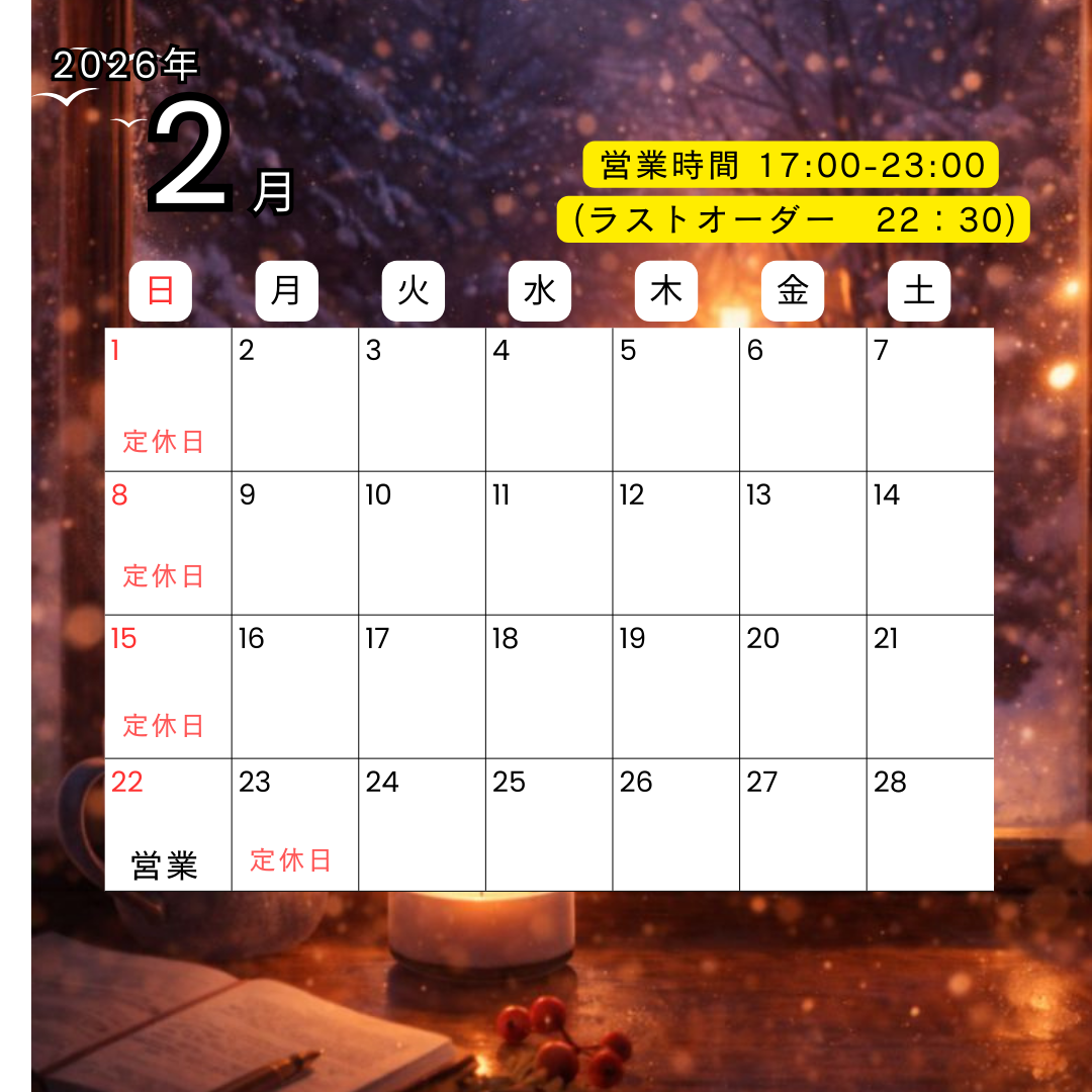 2026年2月営業のお知らせ